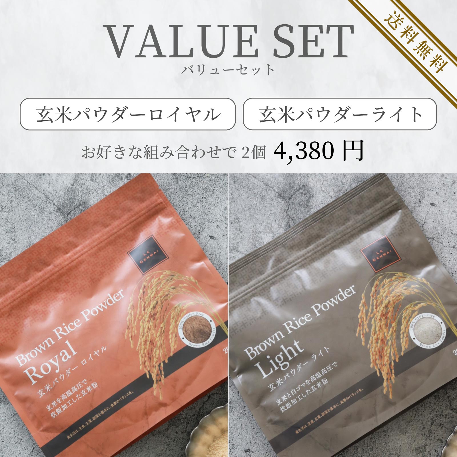 玄米パウダーライトと玄米パウダーロイヤル、それぞれをお好きな組み合わせでご注文が出来ます!